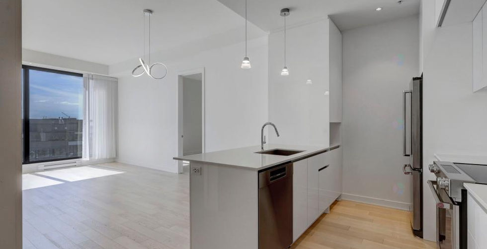 3404 - Magnificent 2-bedroom + 2-bathroom penthouse with 890 sq. ft. gross (822 sq. ft. net), 10-foot ceilings, 1 indoor parking space, and 1 storage unit included. Superb view of the river. Located in the LEED waterfront neighbourhood of Pointe Nord on Île-des-Soeurs, steps from the REM, bike paths, the river, and 5 minutes from downtown. Refined common areas include: indoor and outdoor pools, hot tub, sauna, gym, social room, movie theater. An exceptional quality of life awaits you! A visit will charm you!